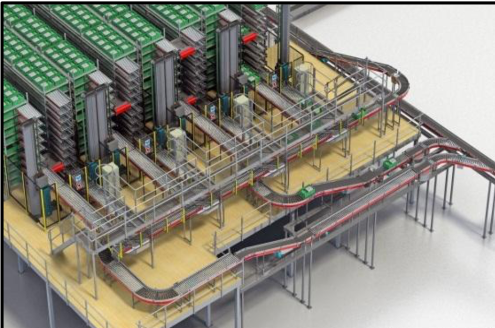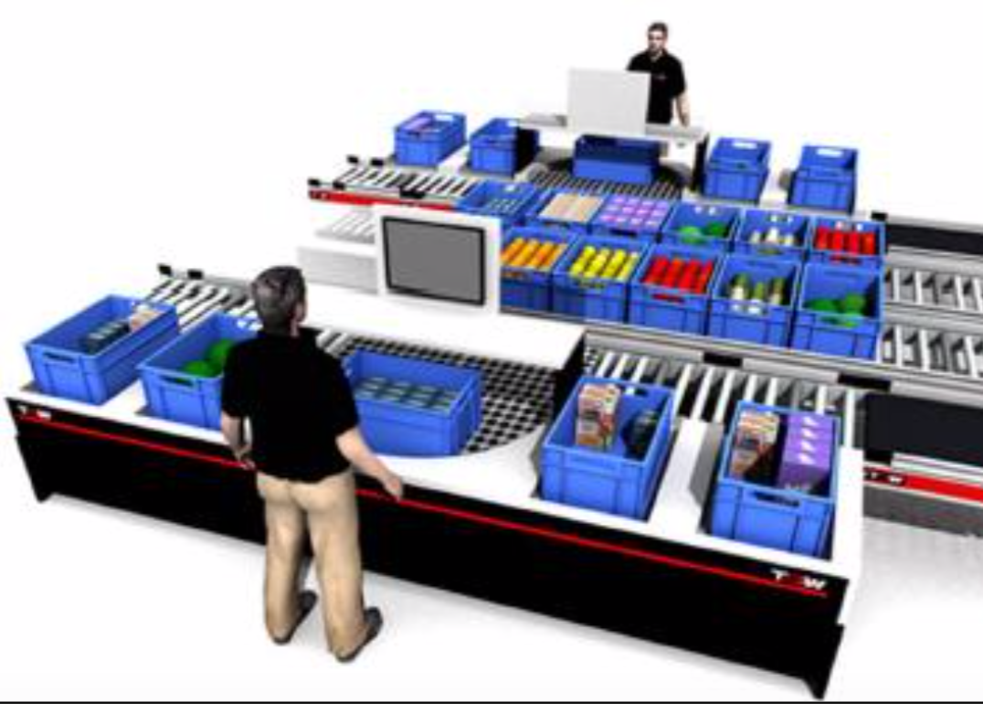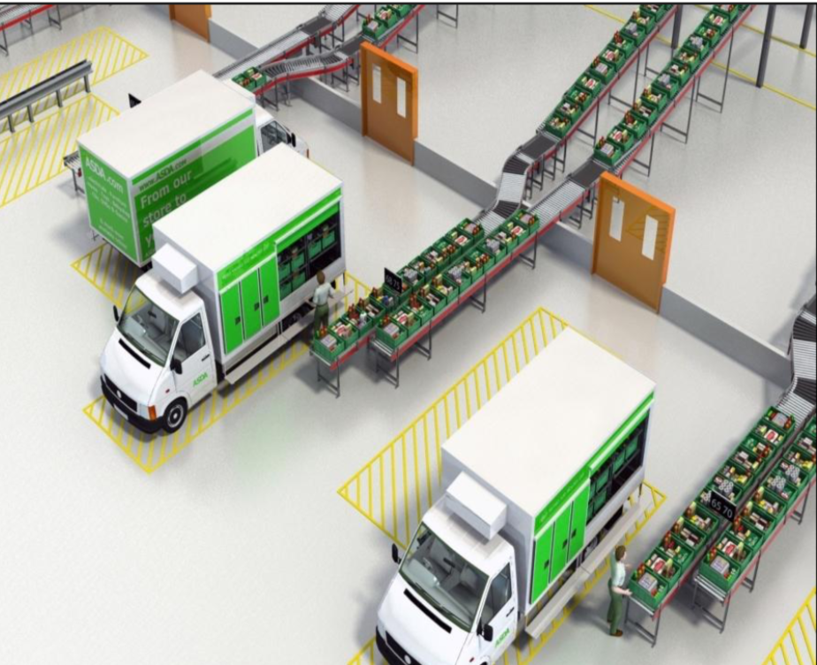 - Automatic routing of sequenced totes by van route into marshalling lanes at loading area.